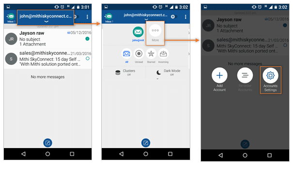 4. Customize the settings to decide the behavior of the application for incoming mails to this account.