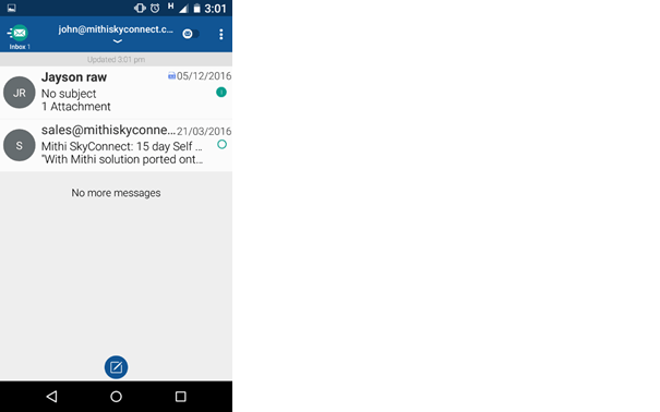• Tap the account name to open Inbox screen showing mail listed in the account.