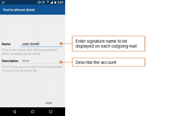 2. Give your account appropriate name which displays in the list of accounts configured on your mobile device.