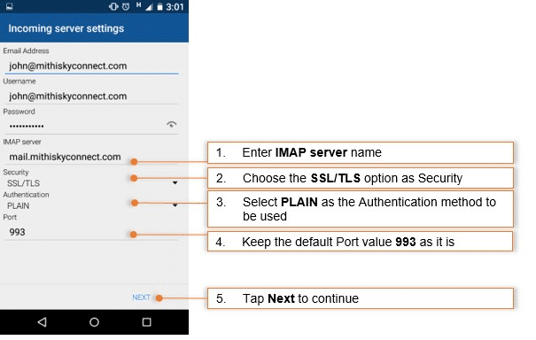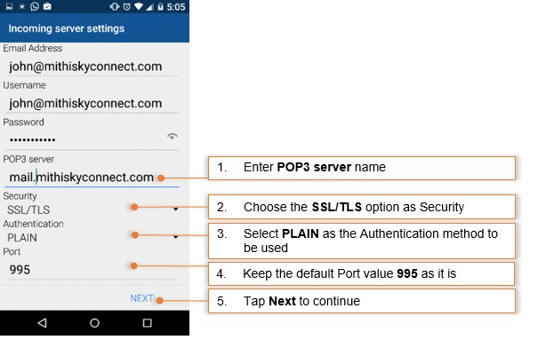 Note: You can configure your email using best suitable app for your phone and convenience using the same configuration settings as provided for your account.